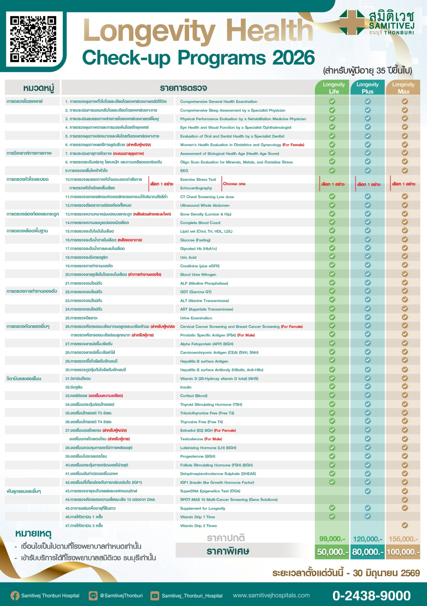 โปรแกรม Longevity Health Check Up 2026 (Plus)