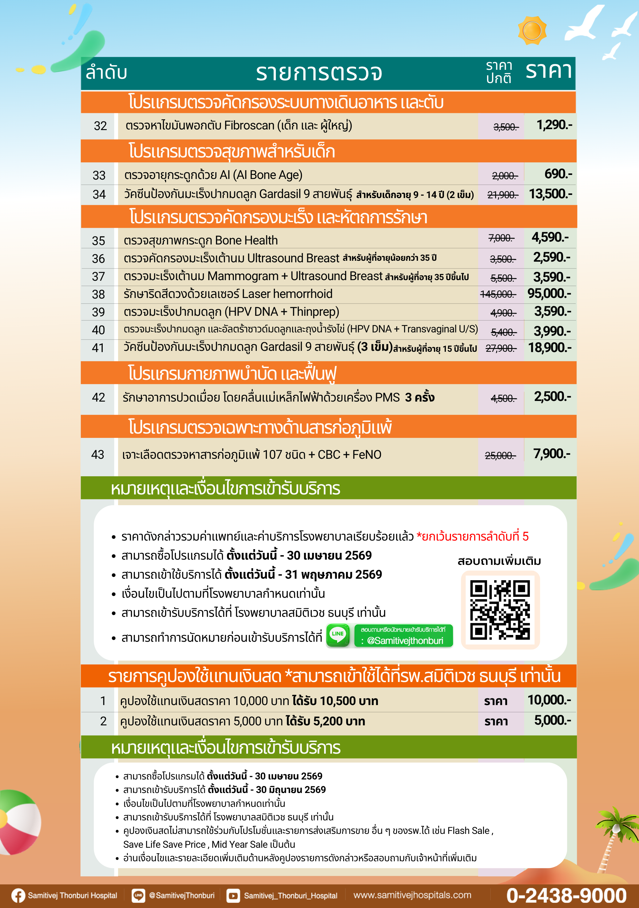• ราคาดังกล่าวรวมค่าแพทย์และค่าบริการโรงพยาบาลเรียบร้อยแล้ว *ยกเว้นรายการลำดับที่ 5