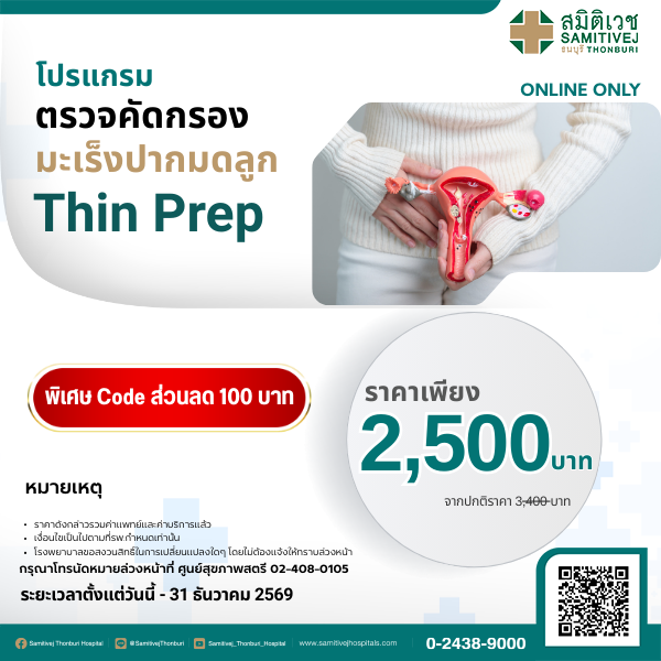 โปรแกรมตรวจคัดกรองมะเร็งปากมดลูก Thin prep (ราคา 2,500 บาท)