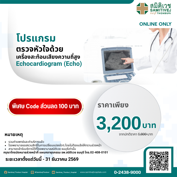 โปรแกรมตรวจหัวใจด้วยเครื่องสะท้อนเสียงความถี่สูง Echocardiogram (Echo)(ราคา 3,200 บาท)